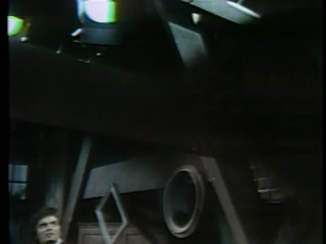 When Quentin is in the Collinwood attic, the camera pans upwards too far, revealing the studio lights.