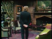 A camera is visible on the left of the frame as Cyrus enters the drawing room, and again later as Angelique enters the same room. Also Christopher Pennock looks down at the floor as he stops in front of the fireplace to make sure he is on his mark.