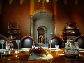 The dining room was a large room adjacent to the kitchen on the first floor of the great house of Collinwood. Elizabeth Collins Stoddard and her brother, Roger Collins often entertained houseguests and invited them for meals prepared by the Collins’ cook and housekeeper, Mrs. Sarah Johnson.