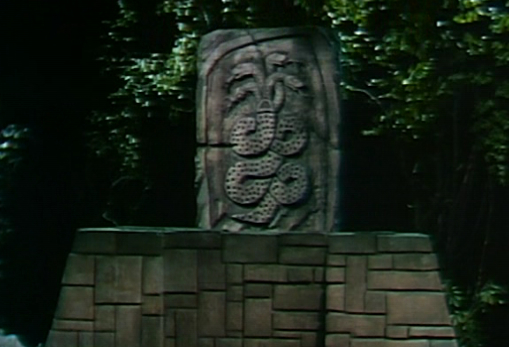Carolyn Stoddard found the altar in the woods and wondered about its origins. Later that night, the altar opened, sliding to the sides of the Naga carving (888), and Barnabas Collins returned to 1969 (889).